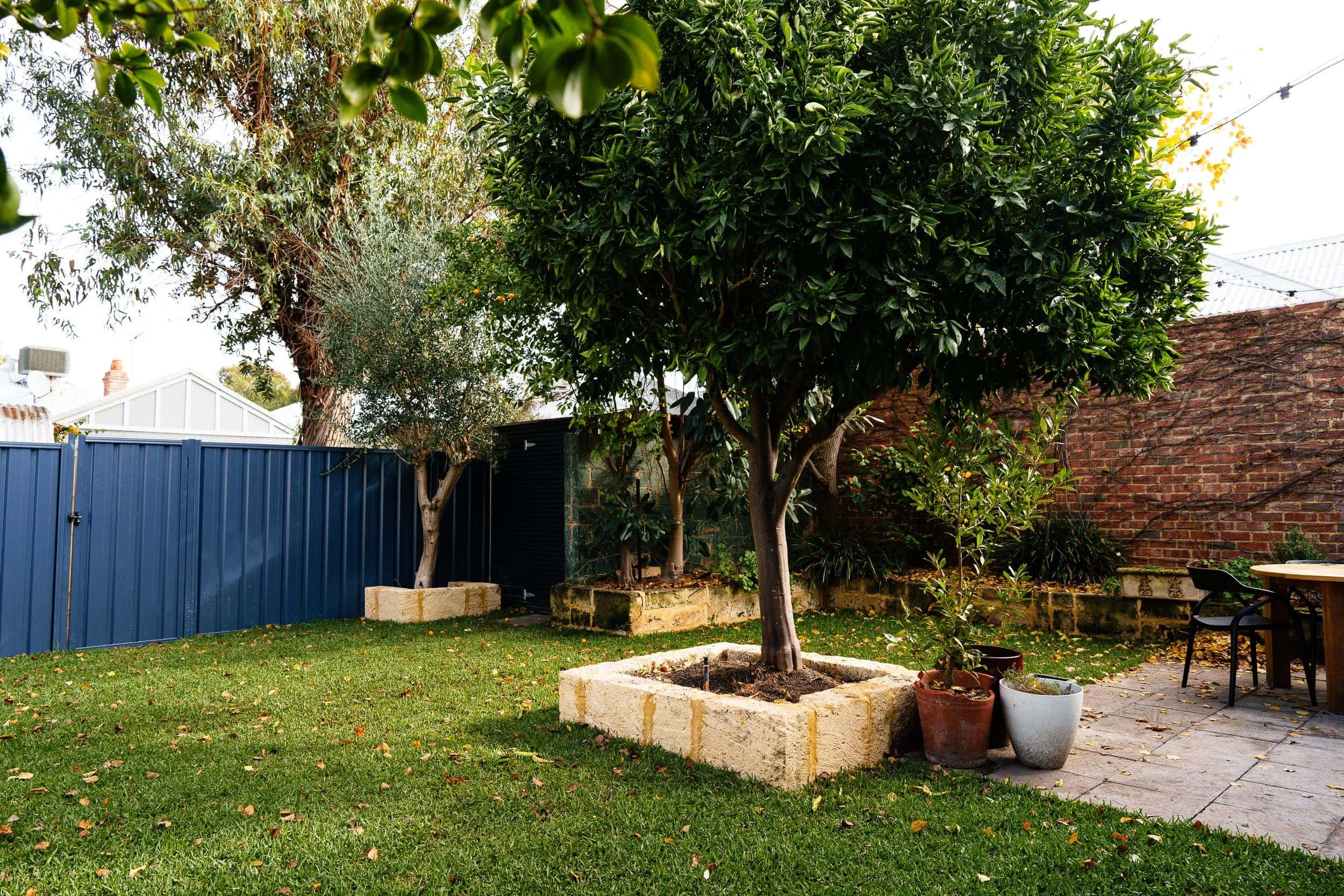 We installed secure Colorbond fencing featuring a lockable gate, offering essential privacy while maintaining convenient laneway access. In keeping with the existing design style, we constructed two limestone-retained garden beds at the base of the established fruit trees. Additionally, a durable new wall and lockable door were built to securely enclose the garden shed, and blend into the existing colour palette of the welcoming outdoor space.